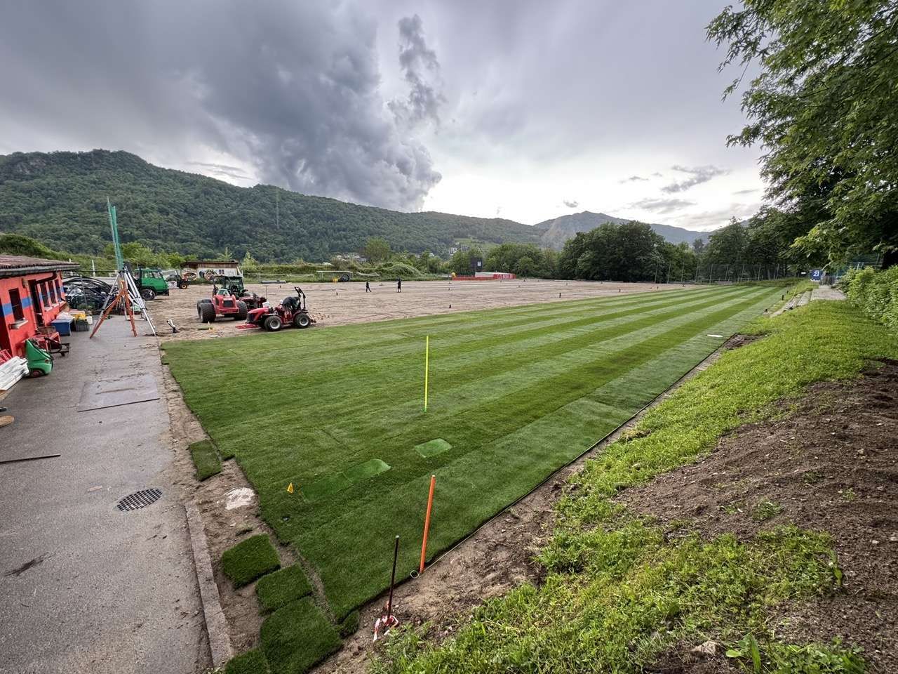 Installazione di tappeto erboso ibrido a Cadro per il Lugano Calcio: galleria fotografica